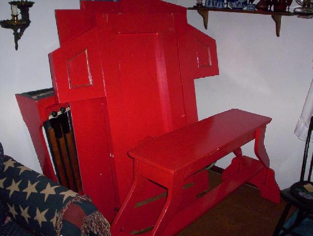 Worked as fast as possible, to get the console painted and back together before the holidays. That pile of console parts made the living room pretty untidy! OK, so the top finials aren't original, but they add some interest, anyway. I'll stick with the Wurlitzer style music rack, too, since it was included.