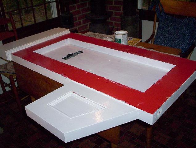 With the console all in pieces anyway, it was the best time to repaint it. That red color really had to go! This is a real "kitchen table" restoration!