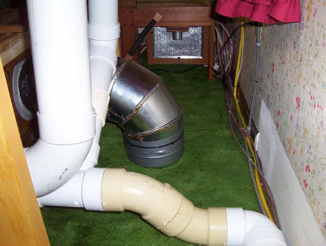 Under the other end of the main chests, showing Y connection to main trem, and 3" line from Vox Regulator to Vox main chest..