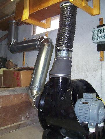 After cleaning, painting, replacing the motor bearings and reassembling, the 36" Spencer 3HP blower is ready to go. These things can really move some air! The 220 volt 3 phase motor is controlled by a VFD converter, which works very well. Now, it's back to work in the pipe room!